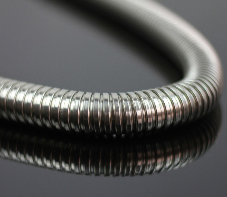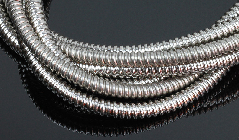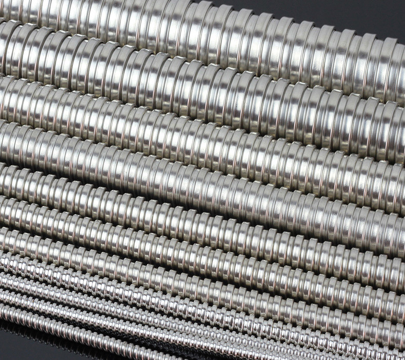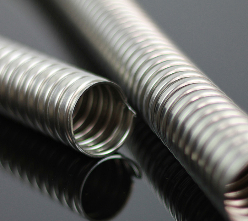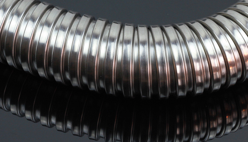 不銹鋼金屬穿線波紋管具有重量輕、口徑一致性好,柔軟性、重復彎曲性、橈性好;耐腐蝕、耐高溫;